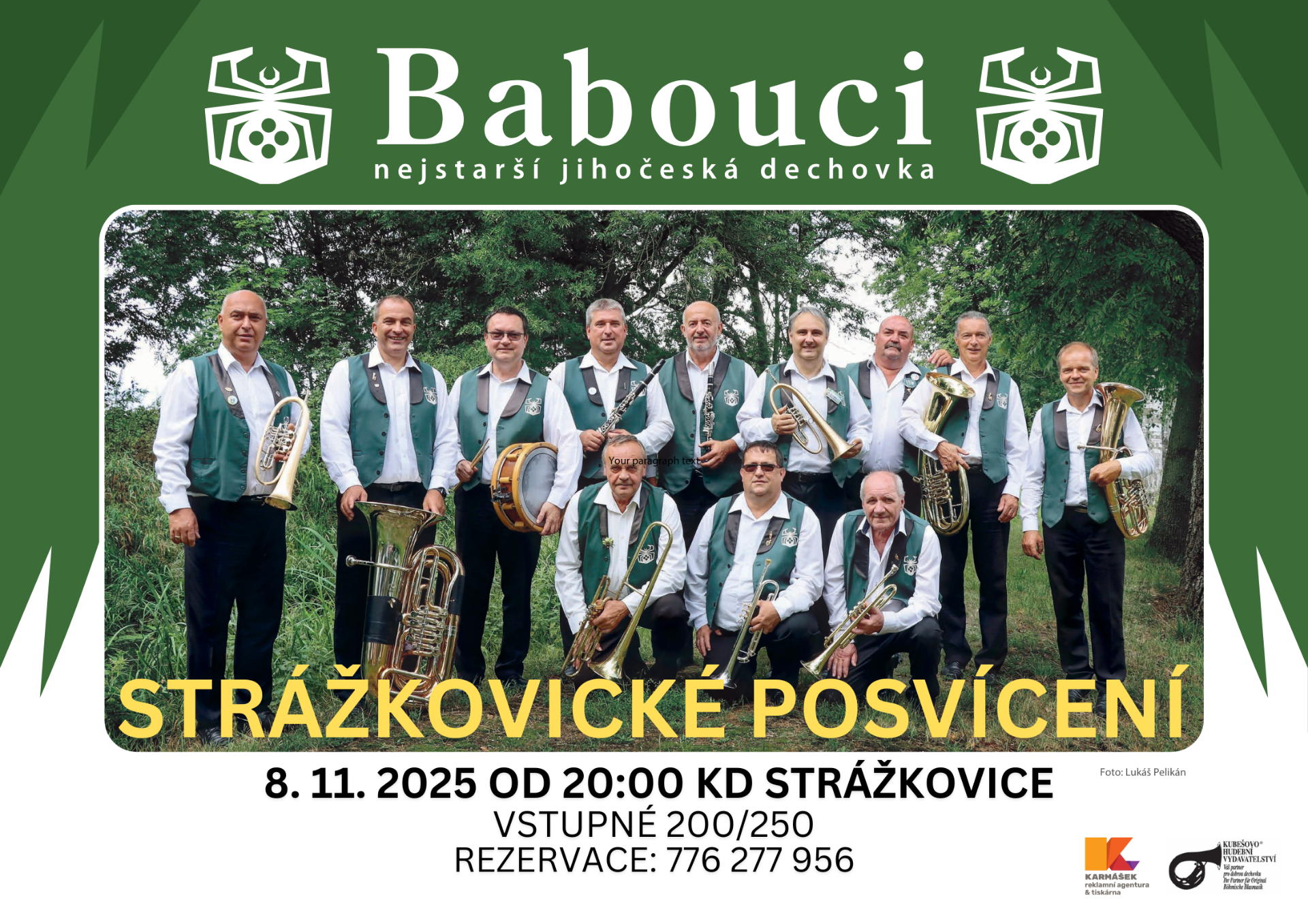 Strážkovické posvícení, které se koná dne 8. 11. 2025 od 20:00h za hudebního doprovodu dechové kapely Babouci.